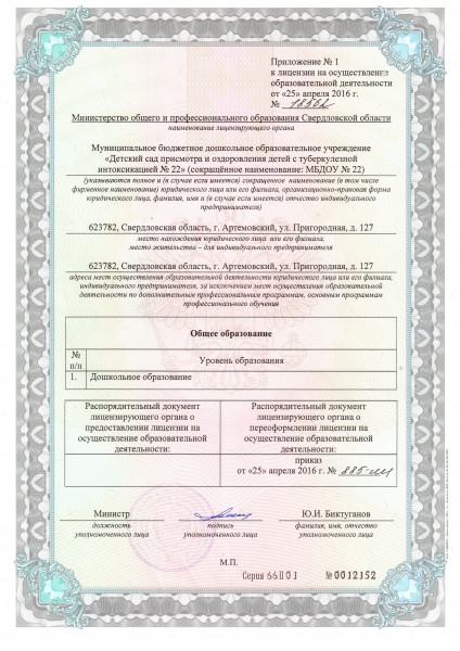 | Полное наименование образовательной организации* | Муниципальное бюджетное дошкольное образовательное учреждение «Детский сад присмотра и оздоровления детей с туберкулезной интоксикацией №22» |